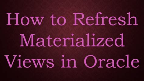 Tutorial How Mobile In Materialized Oracle Google Manually To Refresh 10g View