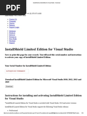 Installshield Limited Edition For Visual Studio 12 Serial Number Peatix